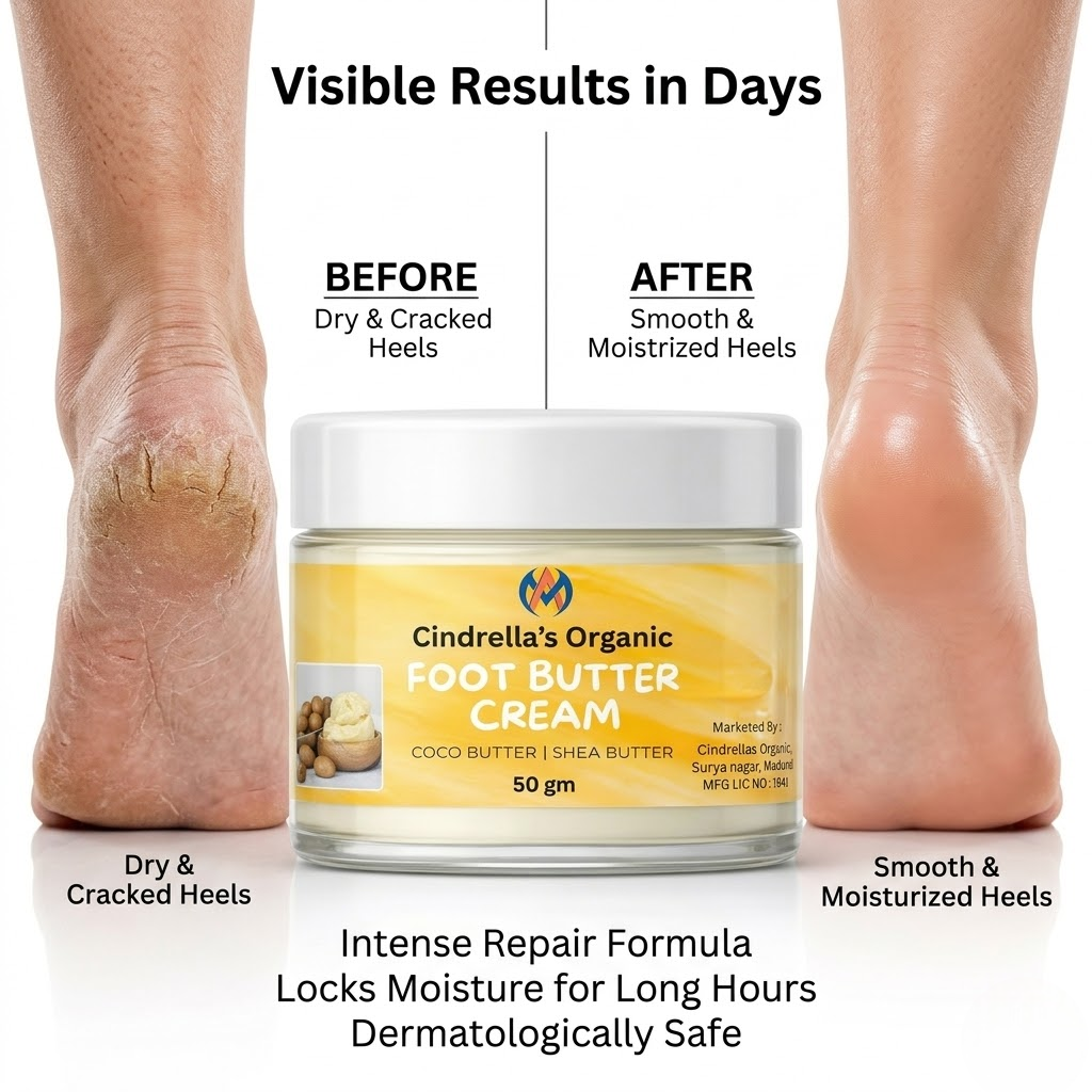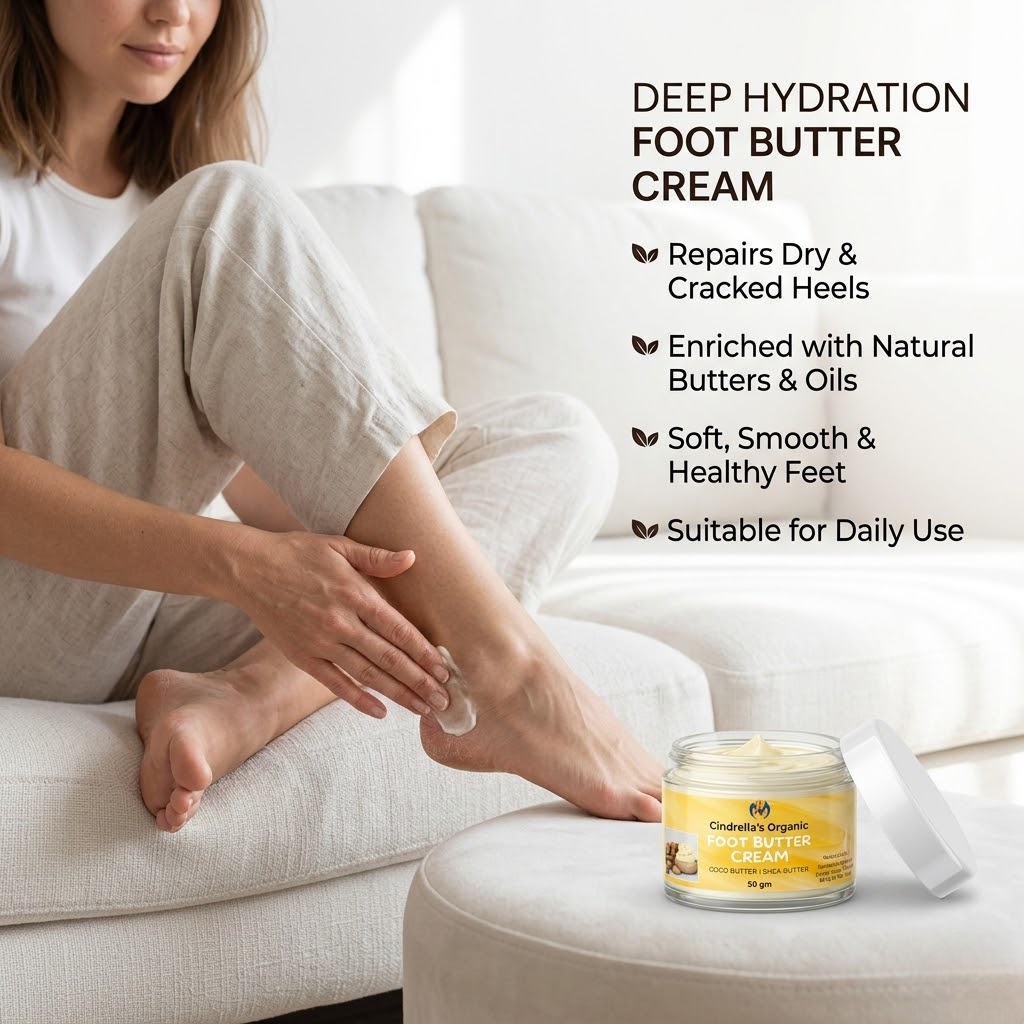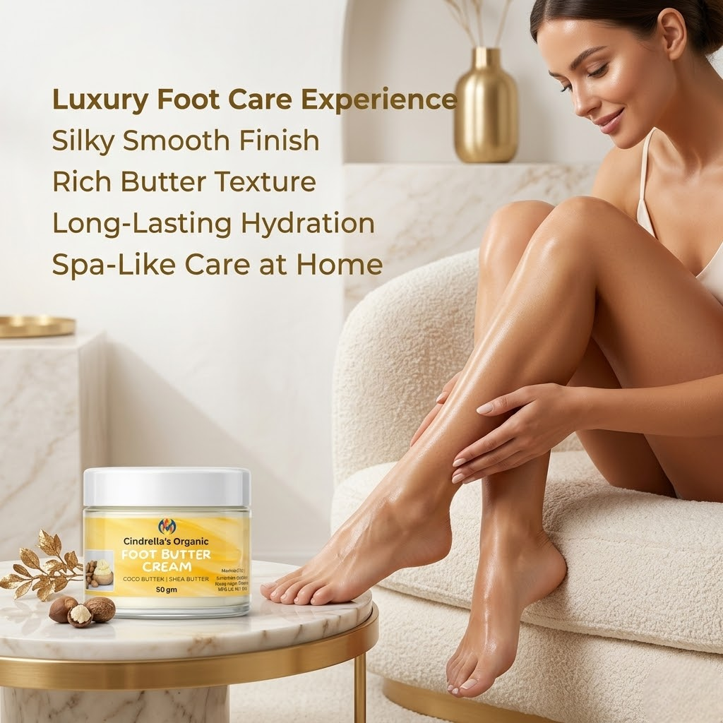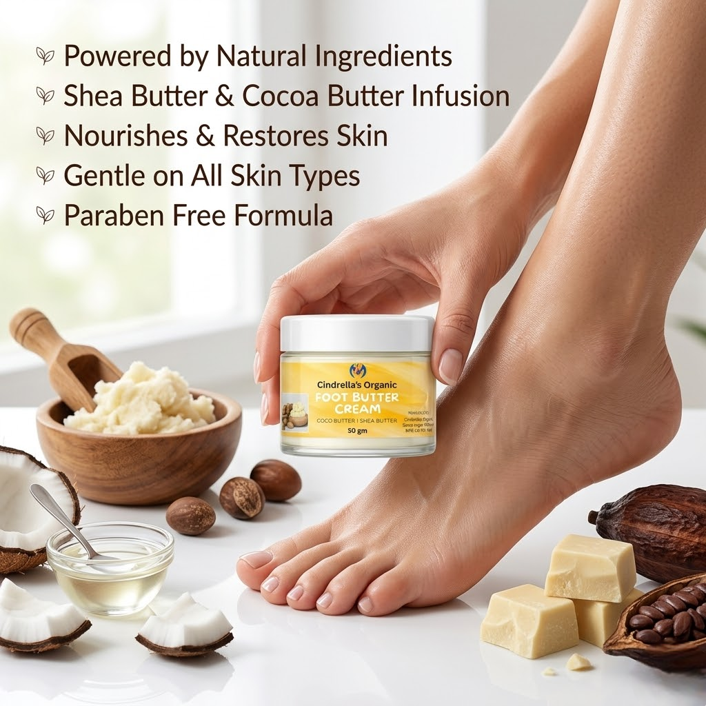 Pamper your feet with the rich nourishment of Cinderella’s Organic Foot Butter Cream. Specially formulated with natural ingredients, this deeply moisturizing cream repairs dry, cracked heels and restores softness. Its non-greasy, fast-absorbing formula provides long-lasting hydration, leaving your feet smooth, healthy, and refreshed. Perfect for daily foot care and all skin types.