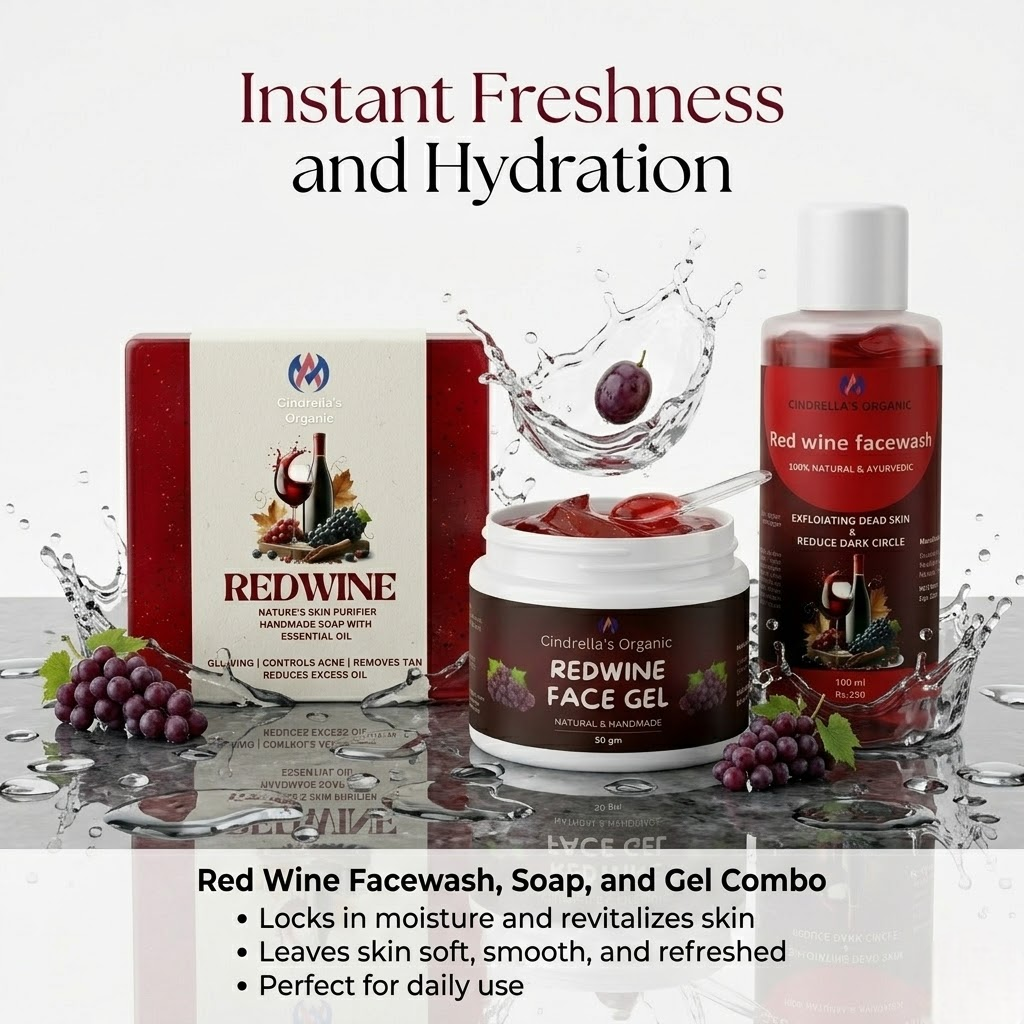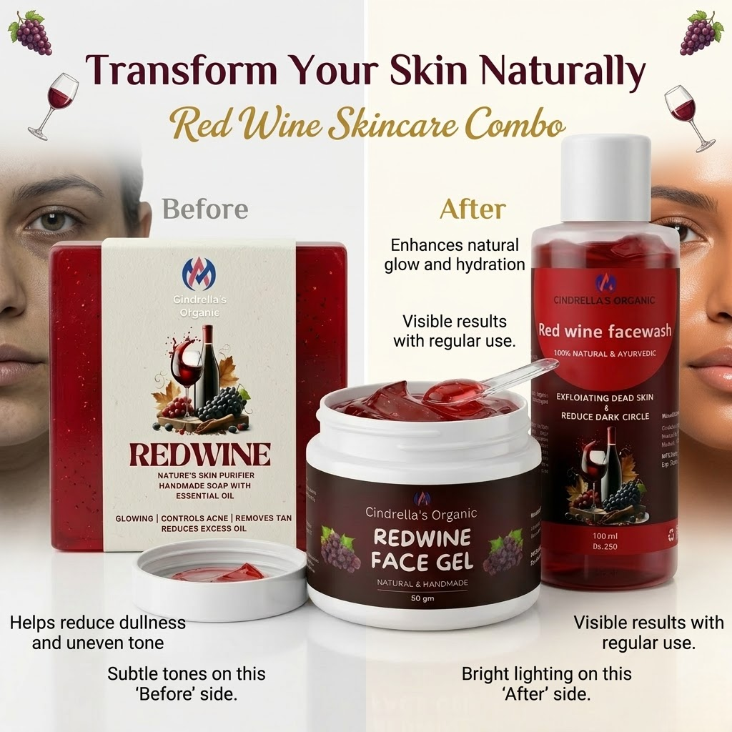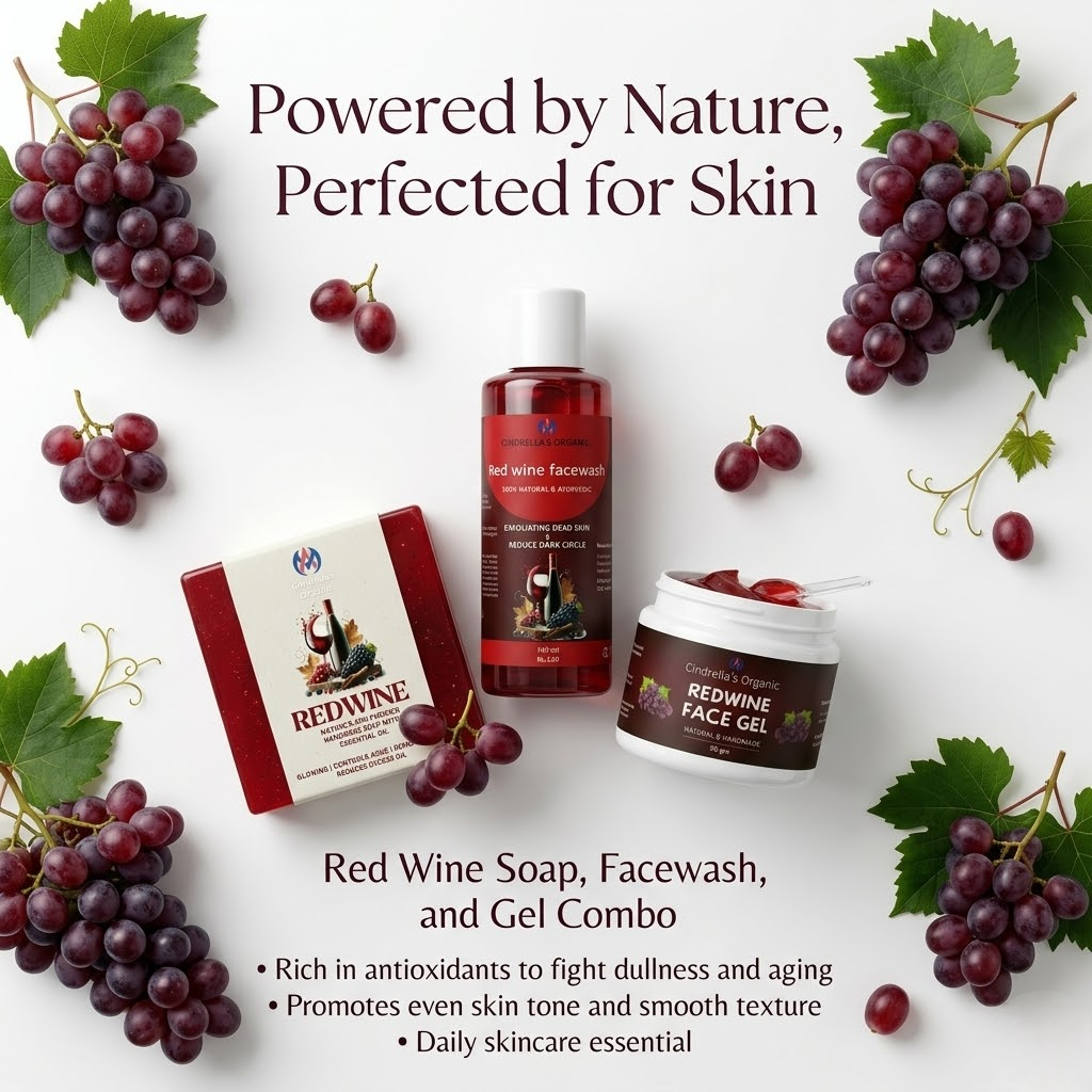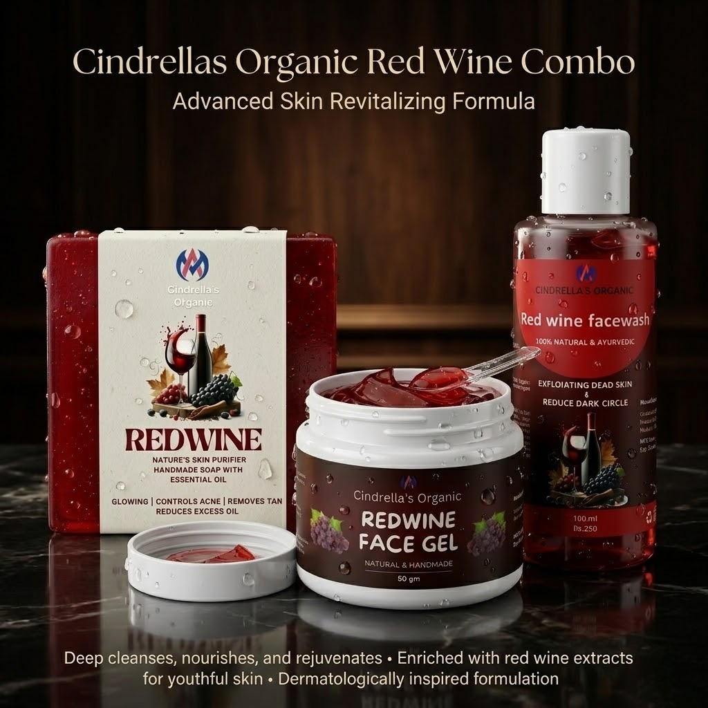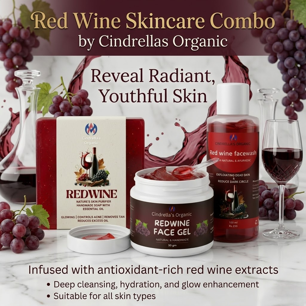 Indulge your skin in the luxury of red wine skincare with CINDRELLAS ORGANIC Redwine Combo 🍇🍷. Enriched with powerful antioxidants like resveratrol & polyphenols, this combo helps rejuvenate, brighten, and protect your skin from damage.